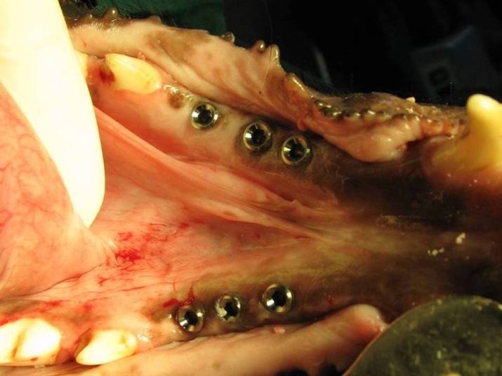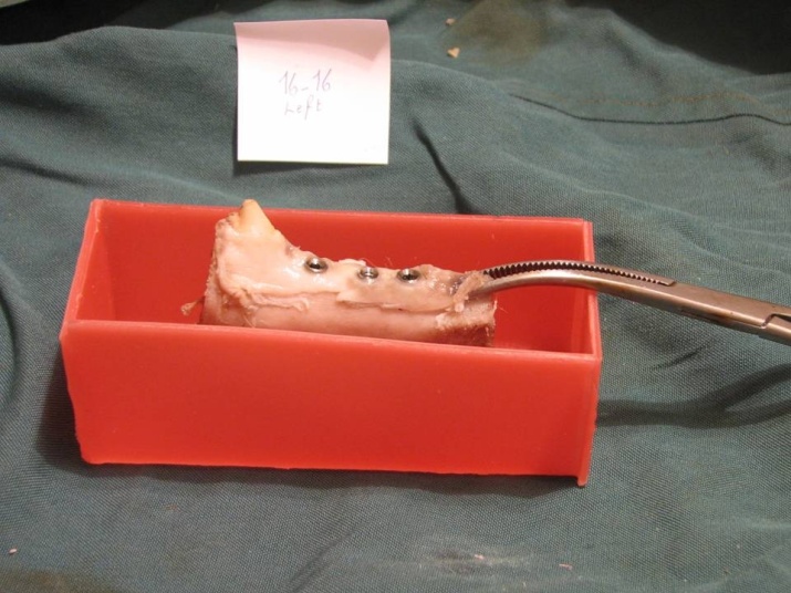Figure 5. Bone blocks containing implants were removed from the jaw bone.