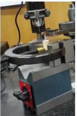 At this stage, an impression coping was connected to each implant analog; then each set was fixed with a clamp, and a manual wrench11 with a minimum force was used for impression coping connection. Then using a digital torque controller (Lutron TQ-8800. Taiwan), 20, 25 and 30 Ncm torques were applied (Figure 1). The axial displacement of each set of implant analogs and impression copings was measured by one operator using a digital indicator (Mitutoyo, Kawasaki, Japan) with 0.001-mm resolution (Figure 2).