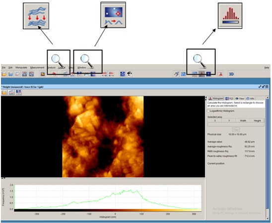 JPK software: Filters used and measurement of surface roughness.