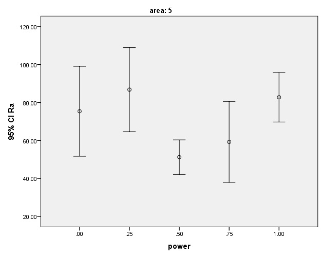 The means and 95% confidence intervals of Ra surface roughness parameter after laser irradiation.