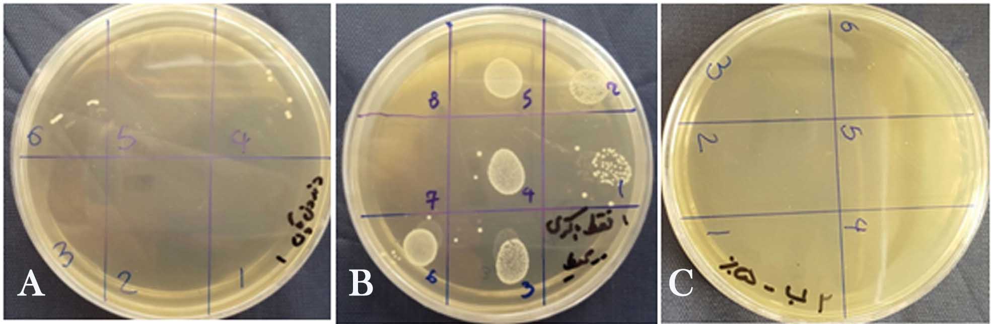 Figure 1.a. Negative control, b. positive control, c. 100% bacterial reduction