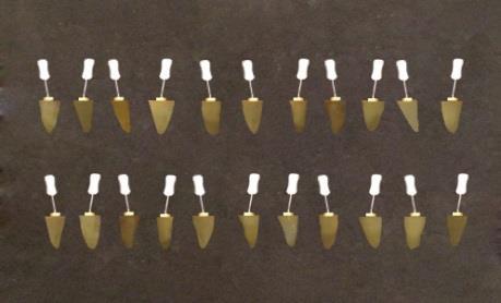 After obturation, the teeth were divided randomly into two groups of ten and 1 tooth was considered as the control sample.14-22, The posts and materials used in each tooth arepresented in Table 1.