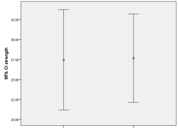 The mean bond strength values of the G-Bond and Z-PRIME Plus groups were 27.6 and 27.4 N, with no statistically significant difference (P<0.9).