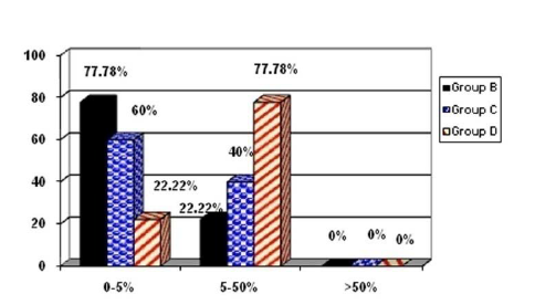 Group C: 6 cases were in the range of 0‒5% and 4 cases were in the range of 5‒50%.
