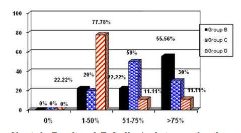 Group D: There were 7 cases in the range of 1‒50%, 1 case in the range of 51‒75% and 1 case in the range of >75%.