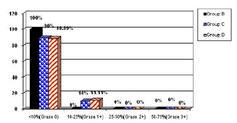 Group D: There were 9 cases below the range of 10% (grade 0) and 1 case in the range of 10‒25% (grade 1+).