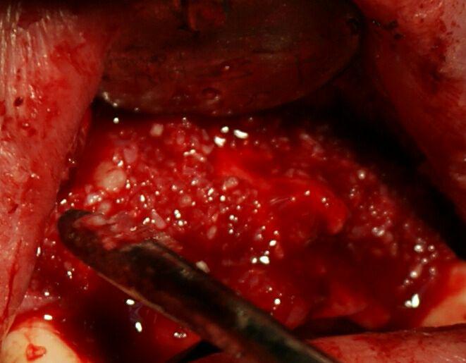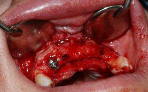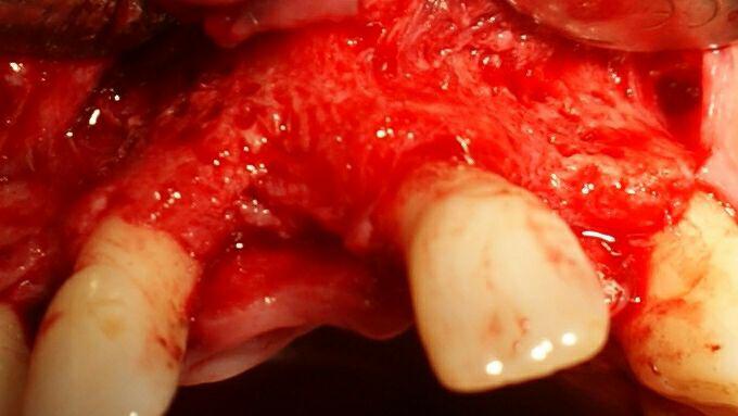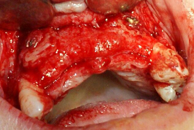 Figure 7.Surgical site reopened six months after augmentation for implant placement.