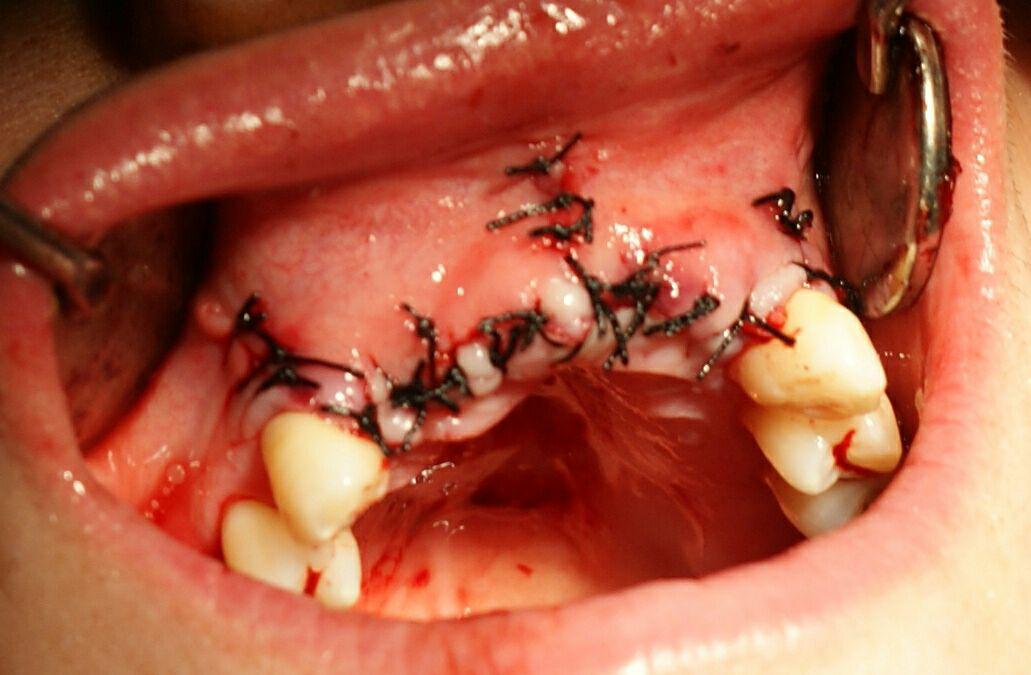 Figure 6.Mucosal flap closed using 3-0 non-resorbable suture.