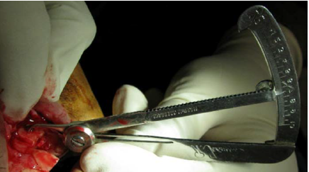 The graft was covered with resorbable collagen membrane (Geistlich Bioguide pharma AG, Switzerland). The mucosal flap was closed using 3-0 non-resorbable (Supa, Tehran, Iran) sutures (Figure 6). To reduce postoperative inflammation, two doses of dexamethasone (8 mg and 4 mg) were administered immediately after and 12 hours after surgery, respectively. The patients also received acetaminophen to provide analgesic benefits. The sutures were removed 10 days later. Six months after the surgery, the flap was reopened (Figure 7) and the ridge width was measured in the same place using a gauge (Figure 8). This was carried out close to where the first measurement was made.