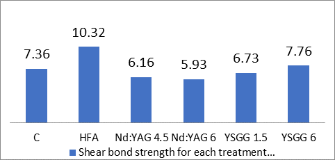 Nd:YAG laser; group 5, surface preparation with 1.5-W Er,Cr:YSGG laser; and group 6, surface preparation with 6-W