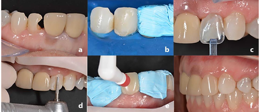 Different techniques are available for anterior restorations. The design of the tooth preparation can be extensive (e.g. total crown) or minimally invasive (e.g. veneers).5 Although different, both crown and veneer treatments require multiple clinical and laboratory steps. Therefore, the single session required in the treatment with PCRV has attracted a lot of attention in the dental community.17,19,20,21