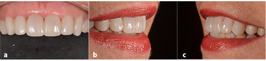 Final aspect of case 2. Facial view (a). Right side view (b). Left side view (c).
