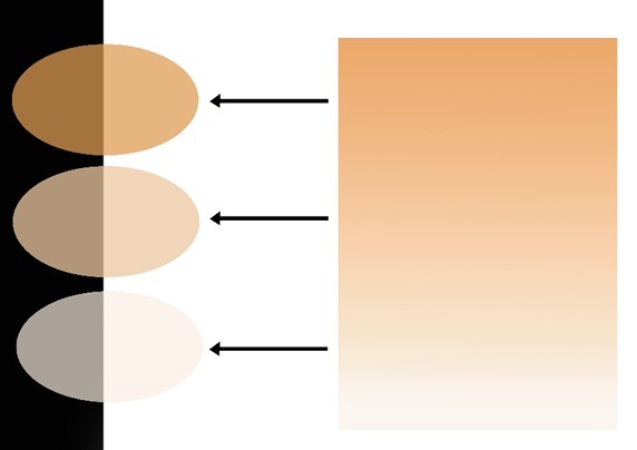 The ΔE values of White and Opaque shades were highly above the perceptible limit and considered clinically significant. The opaque shade obviously increases the brightness and L value and decreases chroma. The clinical purpose of using an opaque shade is frequently to mask the undesired color of underlying substrate.29