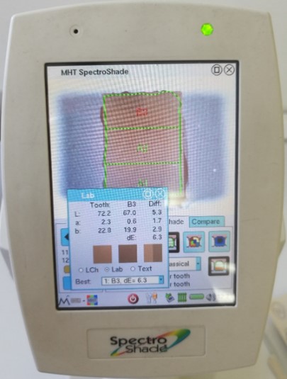CIELab coordinate measurements by a dental spectrophotometer.