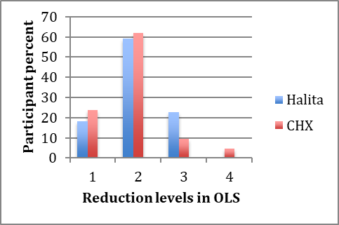 . In the Halita group subjects exhibited 2.04±0.65 reduction in OLS. OLS reduction in the chlorhexidine group was 1.95±0.74. Statistical analysis showed no significant difference between the two groups (P>0.05).