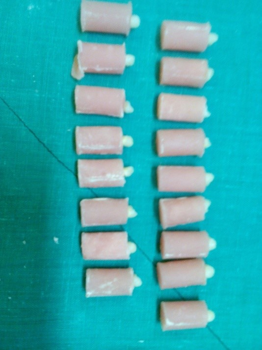 The specimens were then mounted in acrylic resin in a cylindrical mold 1 mm under the CEJ (Figure 2).