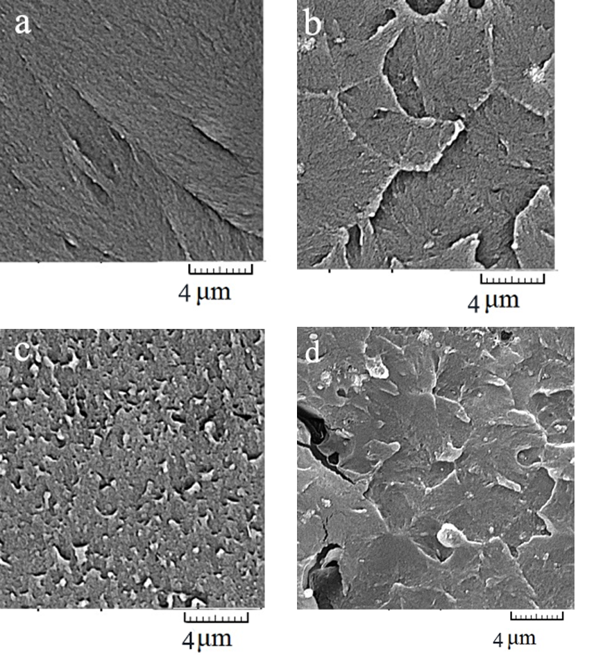 Figure 2.SEM images taken from the cross-section of nanocomposite containing TiO2 nanoparticles with (a) control sample (0 wt%), (b) 0.5 wt%, (c) 1 wt%, and (d) 2 wt%.