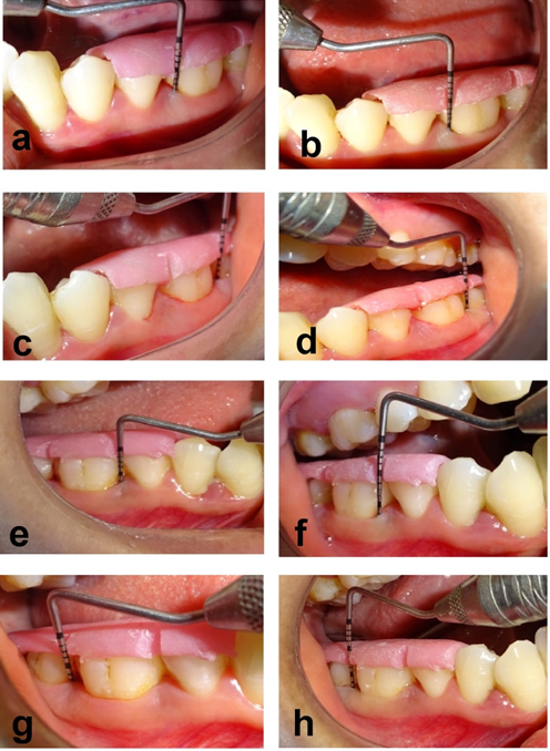 Figure 2.Comparison of PPD at baseline and after 6 months between groups 1 and 2. (a) PPD in group 1 at baseline. (b) PPD in group 1 at 6 months. (c) PPD in group 1 at baseline. (d) PPD in group 1 at 6 months. (e) PPD in group 2 at baseline. (f) PPD in group 2 at 6 months. (g) PPD in group 2 at baseline. (h) PPD in group 2 at 6 months.