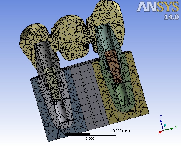 The prosthesis of the 3-unit FPD was developed according to manufacturer’s instructions and guidelines on monolithic zirconia (Lava Plus: 3M ESPE, USA). Each unit of the prosthesis was connected to the adjacent one with a 4*4-mm connector. The pieces of the bridge were carefully assembled on the implant fixtures. The whole file was then exported to the FEA software. Ansys Workbench 14 software (AN- SYS Inc., Canonsburg, Pennsylvania, USA) was used for static nonlinear analysis of the stresses transferred to each point of the model bridge. The necessary material specifications of each part of the bridge were derived from manufacturers and were given to the Ansys Workbench 14 software. These are briefed in Table 1.